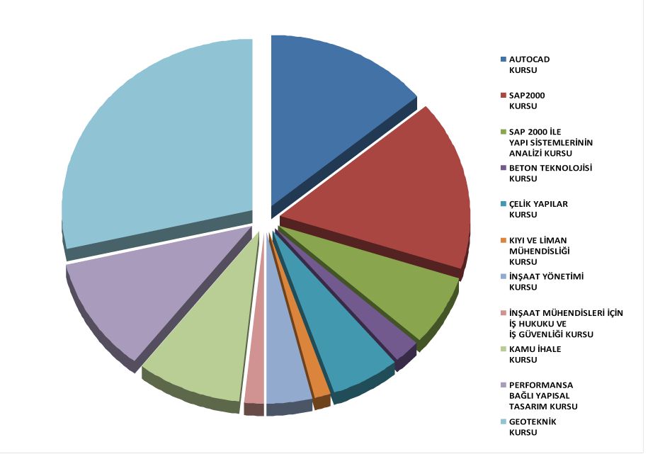 Kaliteli üretim, meslek bilgisi ve deneyimini geliştirmek ön planda tutulmuş, meslektaşların okul sonrası eğitimine önem verilerek, meslekiçi eğitim seminerleri ve birçok kurs programları (Betonarme Yapılar Kursu, İnşaat Yönetimi Kursu, Çelik Yapılar Kursu, Sap 2000 Kursu, İleri Sap2000 Kursu, Etaps Kursu, AutoCAD Kursu, Geoteknik Mühendisliği Kursu, İnşaat Mühendisleri için İş Hukuku ve İş Güvenliği Kursu, Beton Teknolojisi Kursu, Yapı Dinamiği ve Deprem Mühendisliği Kursu, Ulaştırma Mühendisliği Kursu, Hidrolik ve Su Kaynakları Kursu, Kıyı ve Liman Mühendisliği Kursu) hazırlanarak üyelerimizin katılımı sağlanmış, teorik ve pratik olarak bilgi birikimlerini arttırmalarına katkı konmuştur.